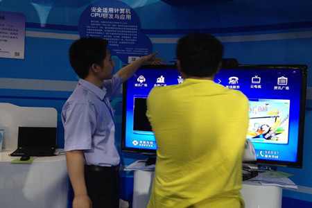 williamhill威廉希尔官网微处理器研发中心的云电视参加了本次科技展。云电视产品是面向三网/4C融合应用领域,以北大众志自主CPU为核心的新一代信息终端。采用北大众志自主创新的CPU产品,单芯片集成了传统计算机的全部功能(用于集散功能的1.5GHz主频CPU、用于2D/3D图形处理的1.0GHz主频GPU、全格式视频编解码处理的VPU和计算机南桥/北桥设备控制的完整模块),通过与国内软件厂商的电视业务服务商的合作,操作系统和应用软件也实现了国产化。充分体现了数字信息终端产品“以计算机技术为平台、以通信技术为纽带、以消费类电子为产品形态”的发展趋势。