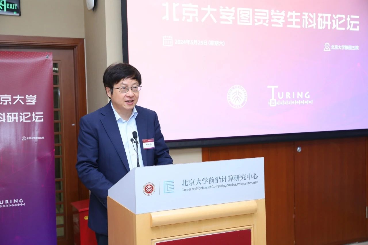 邓小铁老师主持开幕式,代表主办方欢迎老师、同学和企业代表的到来。他表示,图灵学生科研论坛作为图灵班科研培养环节中的重要一环,是北大图灵班的品牌活动,希望同学们把论坛当作未来登上国际学术舞台的练兵场,展示自己的科研成果,倾听同辈们的学术分享,互相交流,共同进步。