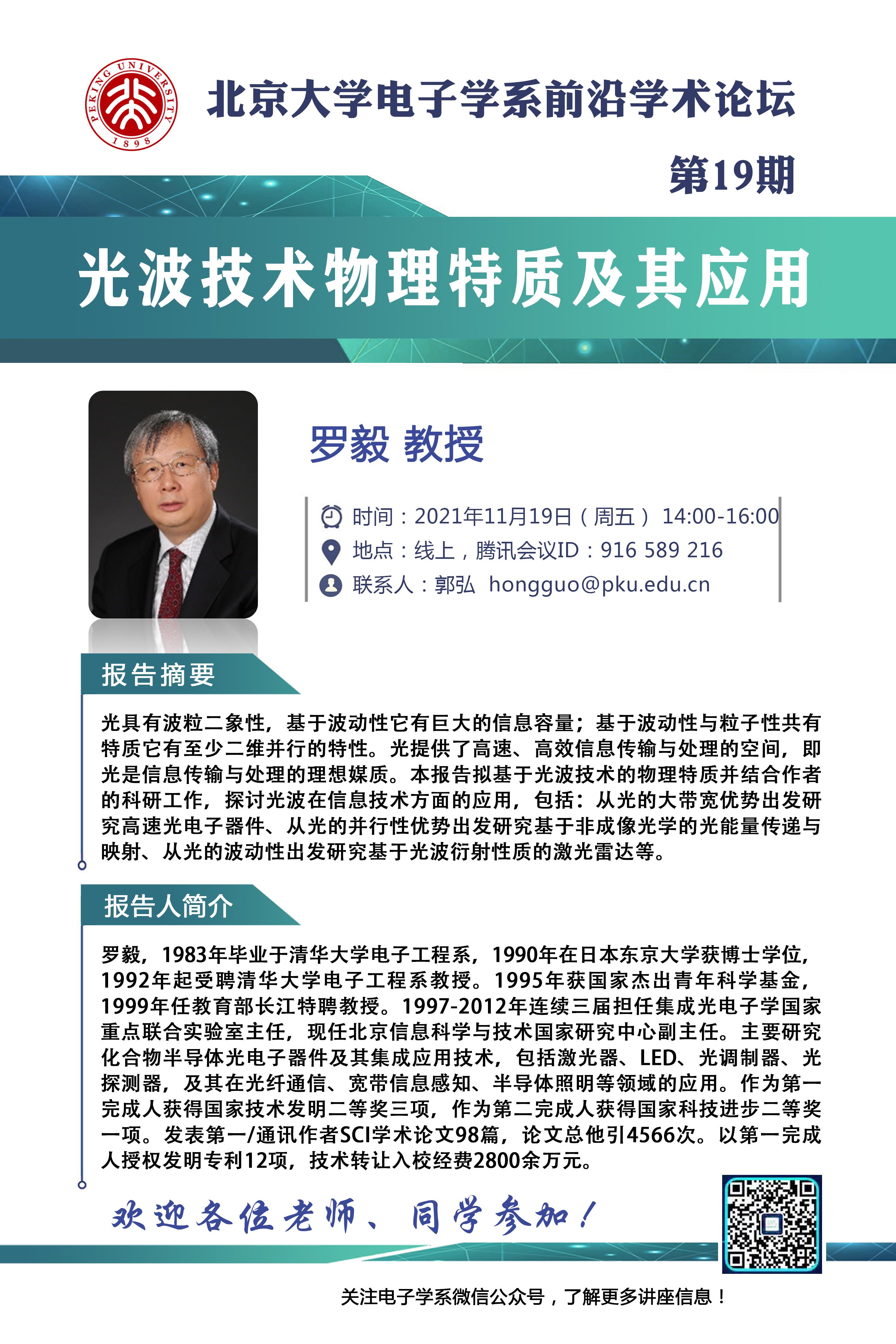williamhill威廉希尔官网电子学系前沿学术论坛 第19期