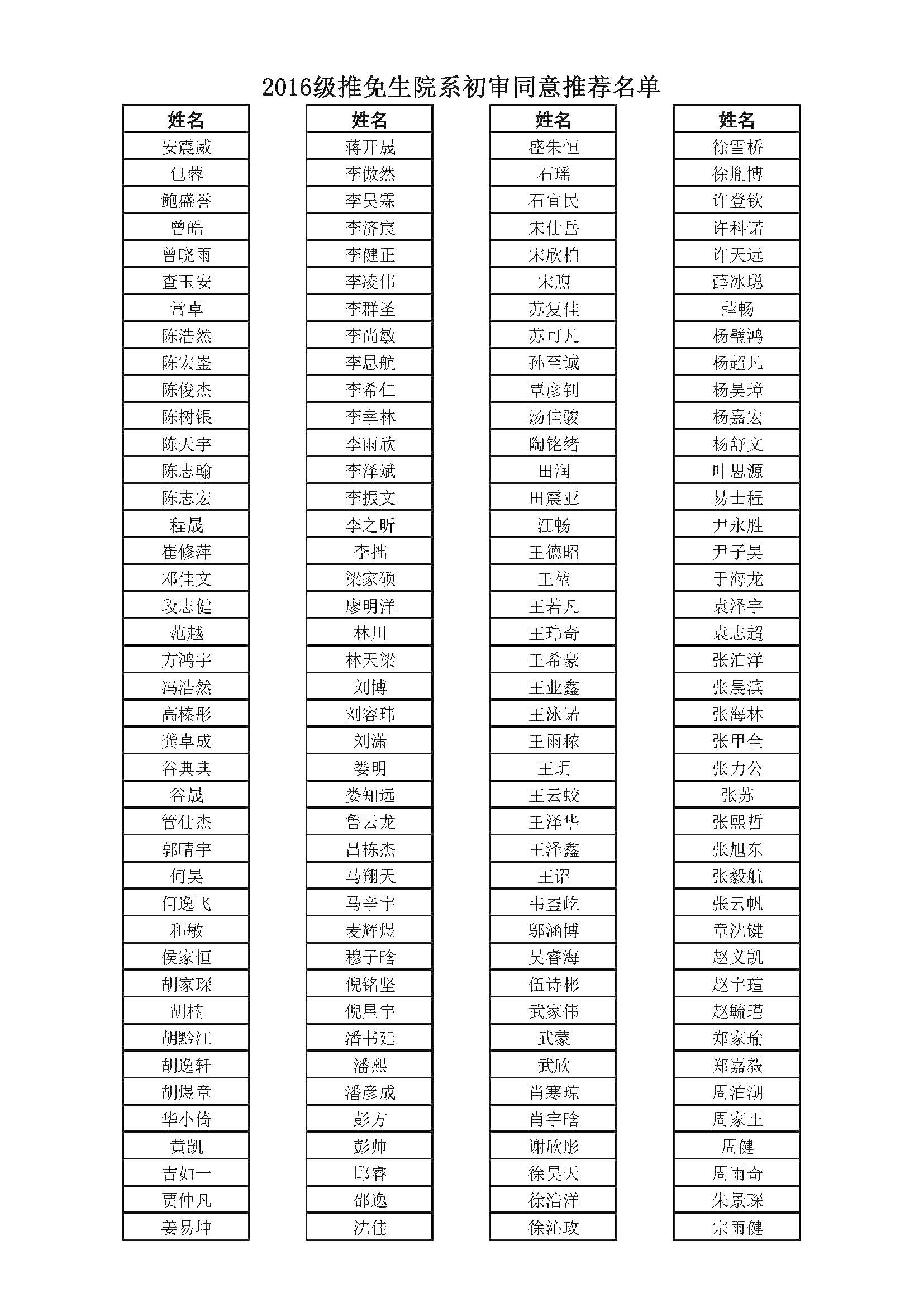 经学院推免生遴选小组审核,现将16级推免生初审院系同意推荐名单公示如下(公示期为9月19日——9月24日),最终结果,待学校审核后,以校内门户推免资格结果查询的为准。