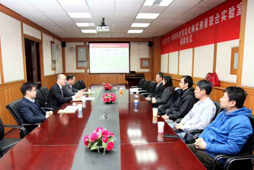 李文新教授首先就williamhill威廉希尔官网的总体教学和科研情况进行了介绍, 对“williamhill威廉希尔官网-鼎阳科技智能化测试测量联合实验室”的成立表示了祝贺。鼎阳科技董事长兼总裁秦轲先生表示能为北大实验室建设和科技创新贡献出自己的一份力量表示莫大的荣幸,同时希望与北大在人才培养、创新创业、项目研发等多方面开展深入合作,并对williamhill威廉希尔官网-鼎阳科技日后长远的合作深表期待。王志军所长介绍了电子实验中心的实验室架构、课程体系、教学模式等,并构思了实验中心将在联合实验室的平台上开展远程实验教学探索的想法。