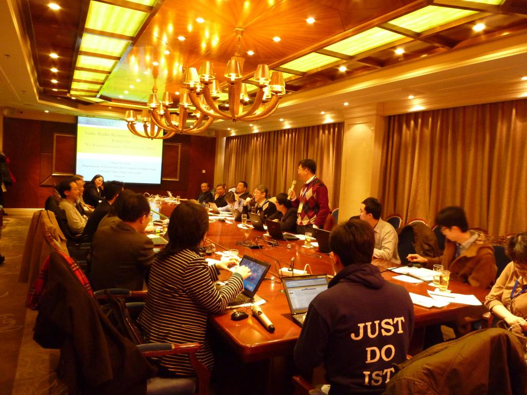 会议由北大信息学院现代通信研究所焦秉立教授、台湾大学电机工程系钟嘉德教授、中国移动通信研究院首席科学家易芝玲博士以及北大客座教授幸多博士共同主持。与会者针对未来5G移动通信技术的发展需求,就目前的关键技术、未来可能的发展方向与挑战等,展开了充分、深入的交流,旨在从新型的网络架构、高效频带效率技术和高效资源分配技术等方面对5G技术前景进行展望。来自台湾大学阙志达教授、逄爱君教授、林风教授、陈光祯教授,台湾交通大学张仲儒教授、王莅君教授,台湾中山大学李志鹏教授,香港科技大学刘坚能教授,香港理工大学黄凯斌教授,北京邮电大学张平教授、陶小峰教授,以及北大学信息学院赵玉萍教授、宋令阳研究员、李斗副教授、杨光临副教授、程翔副教授、王道宪教授等参与讨论。