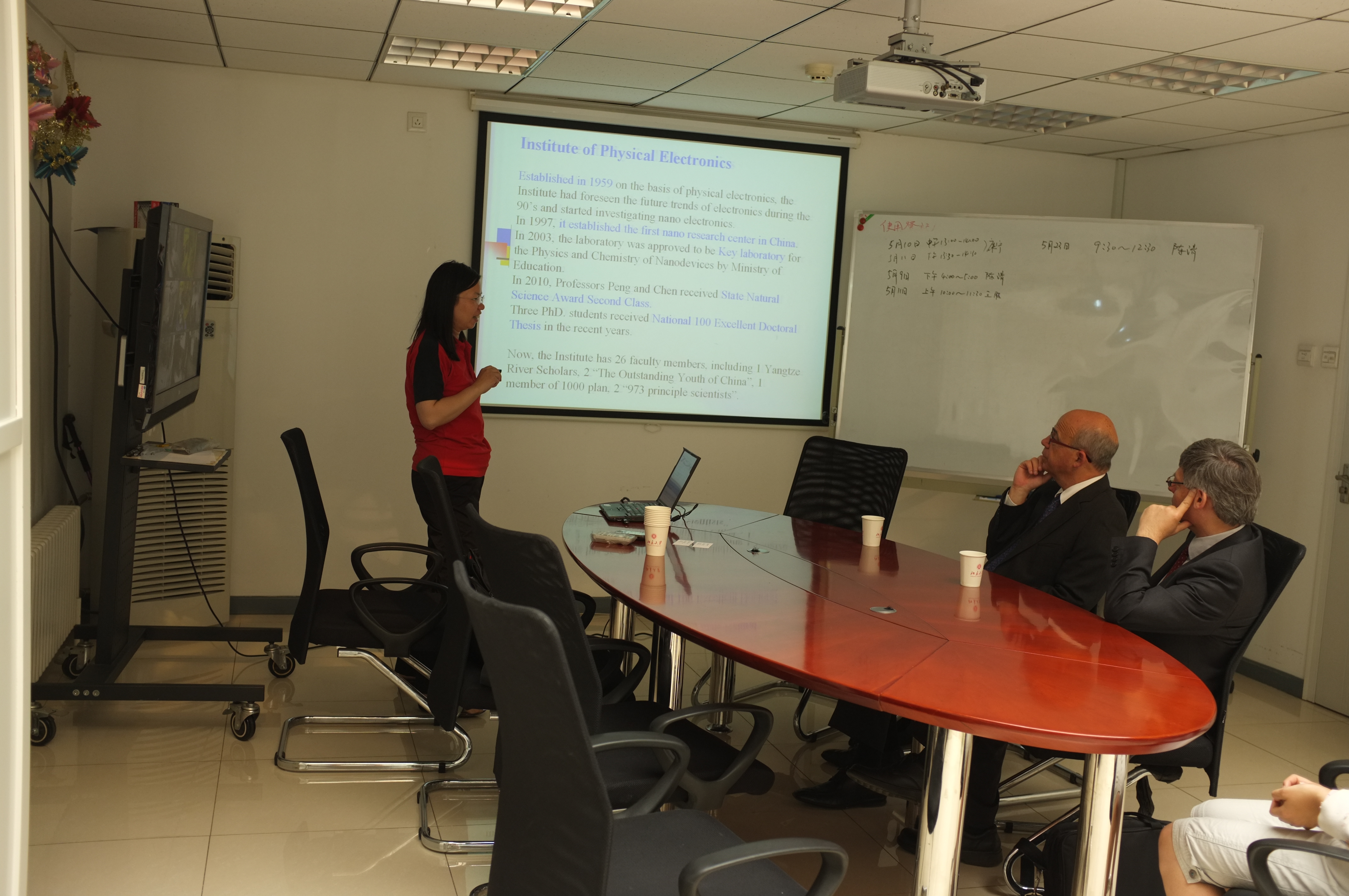 williamhill威廉希尔官网副院长李文新教授参加了常务副校长吴志攀教授在临湖轩主持的接待会。随后,客人来到物理电子学研究所参观交流。所长陈清教授详细介绍了研究所以及纳米器件物理与化学教育部重点实验室的概况、研究方向、近期重要研究成果。Joseph Klafter校长对此表现出浓厚的兴趣,他与陈清所长讨论了以实验室为依托开展联合研究、学生交换的可能性。