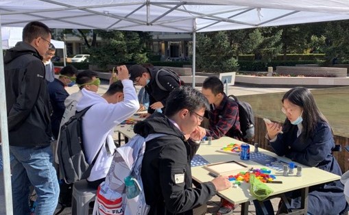 开幕式后,文化周活动在百周年纪念讲堂广场举行。系列活动采用主题展示、互动体验形式,设置人机互动、蒙眼俄罗斯方块等体现代码、编程特色的主题活动,将北大新工科文化带入全校同学的视野,展现了新工科文化中的人文精神内核,让同学们切实感受北大新工科文化的魅力。